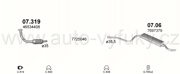 Tlumič výfuku náhrada , kód: 07.319 Příklad použití: Fiat Cinquecento 900 i.e. 92-98, kódy Bosal Walker aj.: 12.0001 099-185 25.07.33 14.045 321052...
