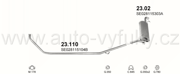 Tlumič výfuku koncový , kód: 23.02 Příklad použití: Seat Marbella 87-92 903ccm, kódy Bosal Walker aj.: 46.7010 227-011 30.26.07 SE6C 230257 01.66220... |