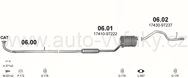 Trubka koncová , kód: 06.02 Příklad použití: Daihatsu Cuore 1.0 12V 10/98-12/02, kódy Bosal Walker aj.: 22.007 11.9004 351-217 40.169.71 P1917...