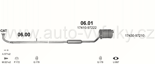 Sběrné potrubí , kód: 06.00 Příklad použití: Daihatsu Cuore 1.0/1.0i 12V 06/00-08/06, kódy Bosal Walker aj.: 42.28.03 DH18020 22860 17410-97222