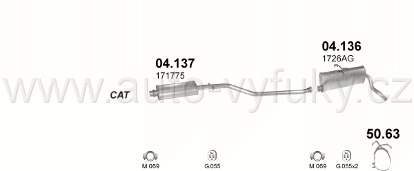 Tlumič výfuku střední , kód: 04.137 Příklad použití: Citroen Berlingo 1.4i kat. 96-/Peugeot Partner 96-, kódy Bosal Walker aj.: 09.088 09.031 10.6018...