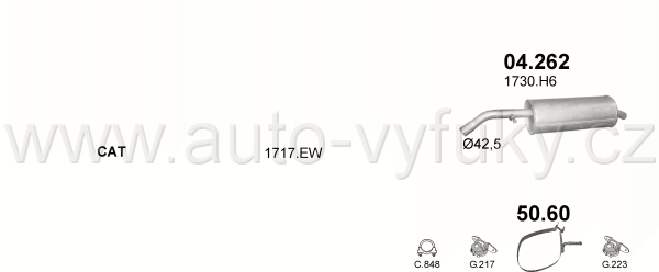 Tlumič výfuku koncový , kód: 04.262 Příklad použití: Citroen C2 1.4i -16V 06-, kódy Bosal Walker aj.: 09.061 10.7052 10.7077 135-015 135-057 13.2.87... |