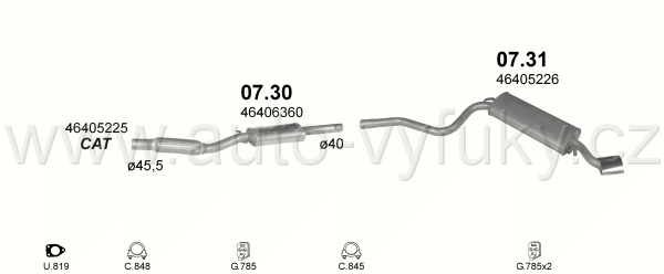 1_07.30 Tlumič výfuku střední FIAT CINQUECENTO 1.1 HATCHBACK 11/1994-1/1999 1108ccm 40kW / 54HP KAT 1.1 i.e. SPORTING