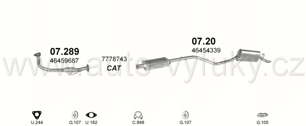 Výfuková soustava , kód: 07.20 Příklad použití: Fiat Punto 1.1i SPI kat 93-96, kódy Bosal Walker aj.: 16.020 12.8029 287-871 03.993.40 550147 P2192... |