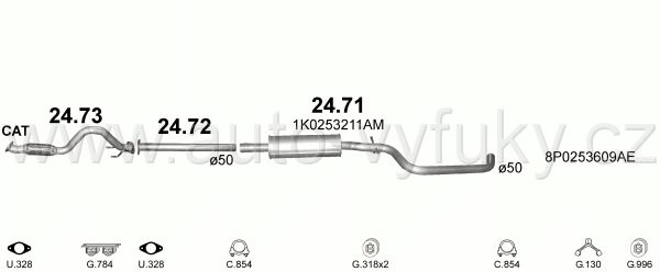 Propojovací potrubí , kód: 24.72 Příklad použití: Skoda Yeti 1.2 TSI 09/09-, kódy Bosal Walker aj.: 850-117 1K0253201K 1K0253201R |