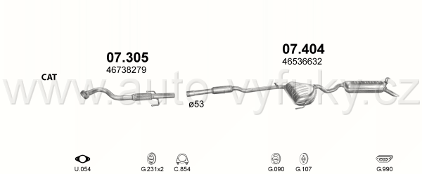 2_07.404 Výfuková soustava FIAT BRAVA/BRAVO 1.2 HATCHBACK 10/2000-10/2001 1242ccm 60kW / 82HP KAT 1.2i 16V