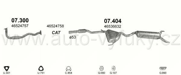 Výfuková soustava , kód: 07.404 Příklad použití: Fiat Brava/Bravo 1.2, kódy Bosal Walker aj.: 16.045 12.8061 292-305 03.098.83 550093 P2220 25.57.09... |