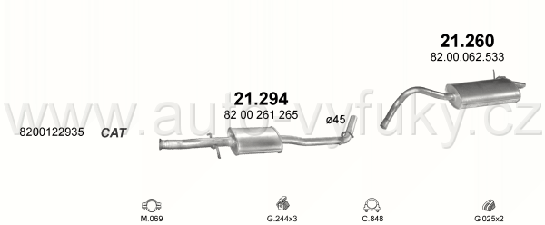Tlumič výfuku střední , kód: 21.294 Příklad použití: Renault Kangoo 1.5 dCi TD 01-, kódy Bosal Walker aj.: 40.6096 279-725 279-711 01.50531 01.50495... |