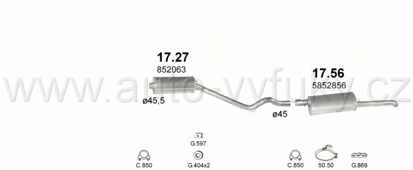 Tlumič výfuku střední , kód: 17.27 Příklad použití: Opel Kadett E 85-91 1.2S/1.3N/1.3S/1.4/1.6S, kódy Bosal Walker aj.: 34.6038 281-023 53.12.06... |