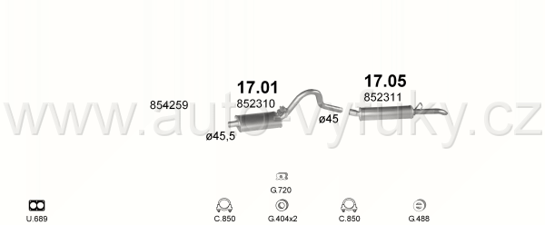 Tlumič výfuku koncový , kód: 17.05 Příklad použití: Opel Ascona B 75-81/Manta 75-87, kódy Bosal Walker aj.: 05.005 34.7051 185-939 P4374 54.42.07... |