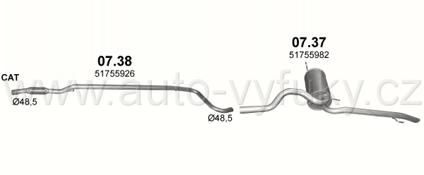 Trubka střední , kód: 07.38 Příklad použití: Fiat Linea 1.3 JTD, kódy Bosal Walker aj.: FA25931 51755926 |