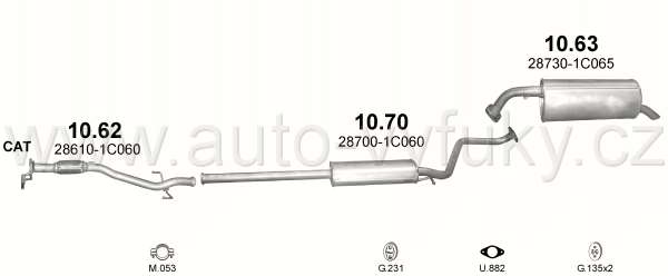 Tlumič výfuku střední , kód: 10.70 Příklad použití: Hyundai Getz 1.1i-12V 02-06 , 1.3i-12V 02-06, kódy Bosal Walker aj.: 15.015 16.6012 284-307... |
