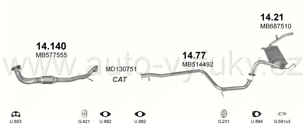 3_14.140 Sběrné potrubí MITSUBISHI LANCER 1.3 SEDAN 9/1988-8/1992 1299ccm 51kW / 69HP KAT EL, GL, GLI, GLXI, C61A, C62A