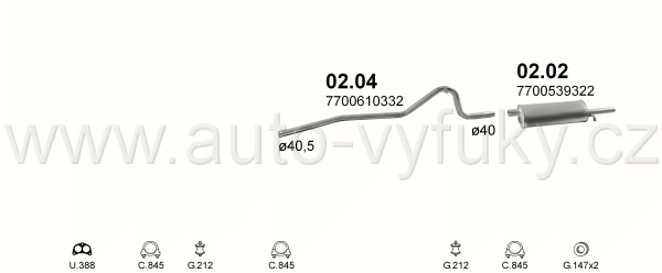 Trubka střední , kód: 02.04 Příklad použití: Dacia/Renault R12 1.3 76-80, kódy Bosal Walker aj.: 820-385 820-332 60.46.04 01582 01577 77.00.565.829... |
