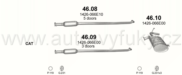 Tlumič výfuku koncový , kód: 46.10 Příklad použití: Subaru Justy 1.3 Hatchback 4x4/ Suzuki Swift 1.3 87r. 4WD, kódy Bosal Walker aj.: 229-501... |