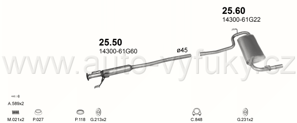 Tlumič výfuku střední , kód: 25.50 Příklad použití: Suzuki Baleno 1.3i-16V 1.6i-16V 95-00, kódy Bosal Walker aj.: 25.010 283-705 01.50488 270466... |