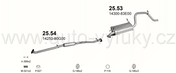 Tlumič výfuku střední , kód: 25.54 Příklad použití: Suzuki Wagon R+ 1.3i-16V 00-, kódy Bosal Walker aj.: 52.6002 283-381 68.80.06 01.50225 01.50224... |