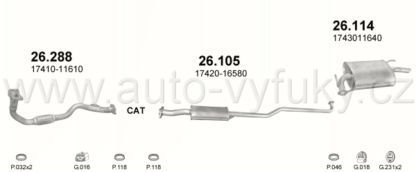 Tlumič výfuku střední , kód: 26.105 Příklad použití: Toyota Corolla 1.3i -16V hat.,sedan, combi 05/92 -05/95, kódy Bosal Walker aj.: 287-427... |