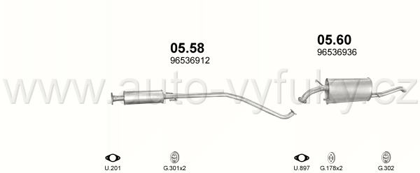 Tlumič výfuku střední , kód: 05.58 Příklad použití: Daewoo Kalos 1.2i; 1.4i hat., sedan 09/02 -, kódy Bosal Walker aj.: 31.002 07.6013 284-337... |
