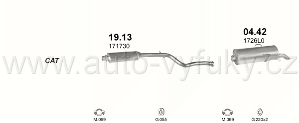 Tlumič výfuku střední , kód: 19.13 Příklad použití: Peugeot 106 1.4i/1.6i/1.4D/1.5D kat 91-96, kódy Bosal Walker aj.: 08.016 36.6002 281-287 282-001... |