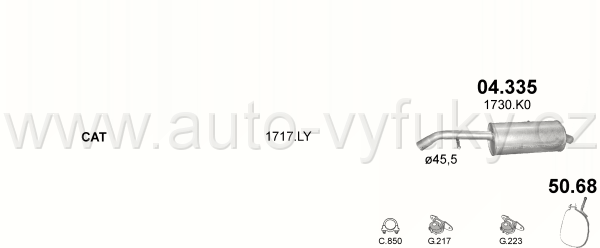 Tlumič výfuku koncový , kód: 04.335 Příklad použití: Citroen C2/C3 1.4 HDi Turbo Diesel 10/05-10, kódy Bosal Walker aj.: 10.7075 135-065 519083 P1882...