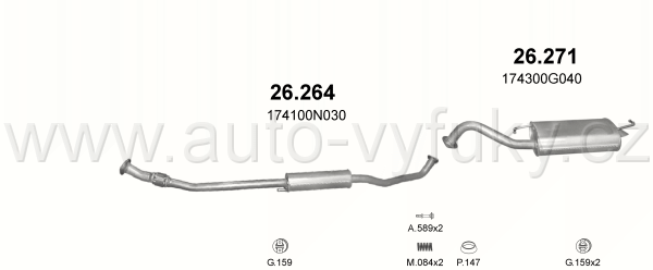 Tlumič výfuku koncový , kód: 26.271 Příklad použití: Toyota Corolla 1.4D-4D 04-07, kódy Bosal Walker aj.: 174300G040 e3 03 10849 |