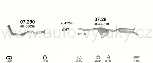 Výfuková soustava , kód: 07.26 Příklad použití: Fiat Brava/Bravo 1.4i S/SX kat. 95-, kódy Bosal Walker aj.: 12.8039 286-239 550079 P2205 25.50.09...