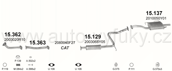 Sběrné potrubí , kód: 15.362 Příklad použití: Nissan Sunny 1.4Ix 92'' kat, kódy Bosal Walker aj.: 2003020R10'