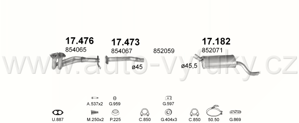 Trubka střední , kód: 17.473 Příklad použití: Opel Kadett 84-91 1.3N/S, kódy Bosal Walker aj.: 05.017 34.3002 834-013 08.285.72 P4354 53.11.02 21.118... |