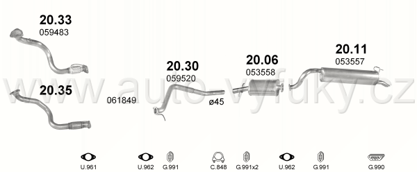 Sběrné potrubí , kód: 20.35 Příklad použití: Polonez Caro 1.4 MPi bez KAT, kódy Bosal Walker aj.: |