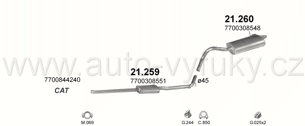 Tlumič výfuku střední , kód: 21.259 Příklad použití: Renault Kangoo 1.4 kat 97-, kódy Bosal Walker aj.: 10.064 40.6093 284-079 17.0.82 522182 P5031... |