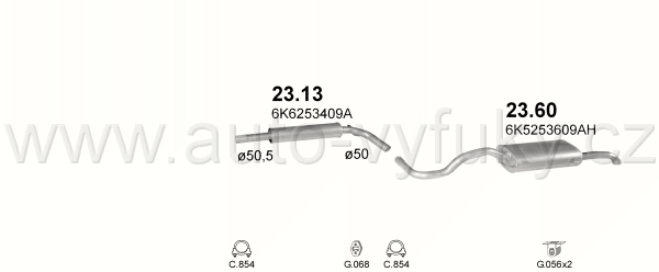 Tlumič výfuku střední , kód: 23.13 Příklad použití: Seat Cordoba/Ibiza1.0i; 1.4i; 1,6i SDN;1.8; 1.9SDi; 1.9TD 94-02; VW Polo 1.4i; 1.6i 95 -01;... |