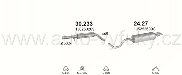 Tlumič výfuku koncový , kód: 24.27 Příklad použití: Skoda Octavia 1.6i HB 100KM Seat Toledo 1,9 SDi 01- VWGolf IV 1,4i-16V 1,6i ,1,9SDi 99-, kódy... |