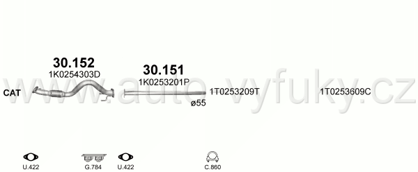 Propojovací potrubí , kód: 30.151 Příklad použití: VW Golf V/Golf V Plus 1.4 TSi/Touran 1.4 FSi, kódy Bosal Walker aj.: 850-057 P7597 01.40317... |