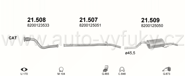 Sběrné potrubí , kód: 21.508 Příklad použití: Renault Thalia Sedan 1.5 dCi TD 01/01-, kódy Bosal Walker aj.: 750-075 01.20033 8200123533 |