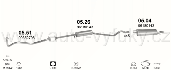 Tlumič výfuku střední , kód: 05.26 Příklad použití: Daewoo Nexia 1.5 bez katalizatora 95 -99, kódy Bosal Walker aj.: 24.013 07.6002 282-793 48.896.80... |