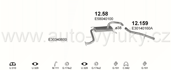 Trubka koncová , kód: 12.159 Příklad použití: Mazda 323 80-85 1.3/1.5 SDN, kódy Bosal Walker aj.: 381-267 06213 E301-40-160A E305-40-160A E305-40-160B |