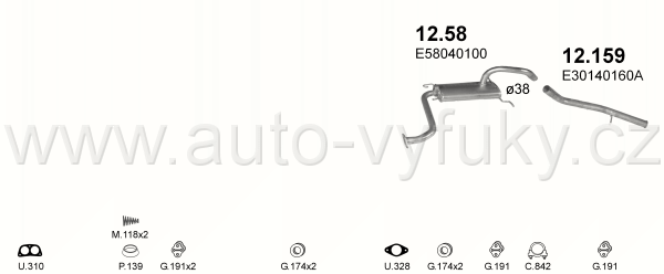 Trubka koncová , kód: 12.159 Příklad použití: Mazda 323 80-85 1.3/1.5 SDN, kódy Bosal Walker aj.: 381-267 06213 E301-40-160A E305-40-160A E305-40-160B |