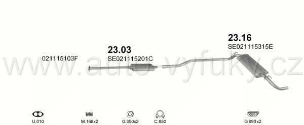 Tlumič výfuku střední , kód: 23.03 Příklad použití: Seat Ibiza 85-92/Malaga 85-92/Ronda 85-87 1.2/1.5 3/4D, kódy Bosal Walker aj.: 19.002 46.6004... |