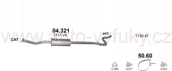 Tlumič výfuku střední , kód: 04.321 Příklad použití: Citroen C2 1.6i 16V / Peugeot 1007 1.6i 16V, kódy Bosal Walker aj.: 10.6043 286-049 13.2.94... |