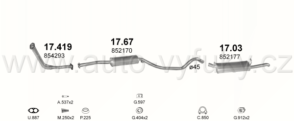 Sběrné potrubí , kód: 17.419 Příklad použití: Opel Ascona 81-88 1.6D, kódy Bosal Walker aj.: 05.078 34.1064 781-919 54.52.01 VL311J 120176 07824...