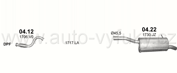 Tlumič výfuku koncový , kód: 04.22 Příklad použití: Citroen Berlingo / Peugeot Partner 1.6 HDi, kódy Bosal Walker aj.: 10.7086 135-103 P4668 01.61114... |