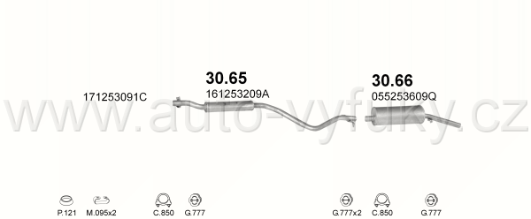 Tlumič výfuku střední , kód: 30.65 Příklad použití: VW Golf I 1.6 GTI 77-84/Jetta 81-84/Scirocco 77-83, kódy Bosal Walker aj.: 58.6010 282-247 112017... |