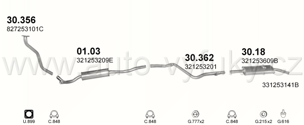 Trubka střední , kód: 30.362 Příklad použití: VW Passat 1.3; 1.6 80-88/Santana 81-86, kódy Bosal Walker aj.: 04.011 58.5012 831-269 91 11 2015 P7271... |