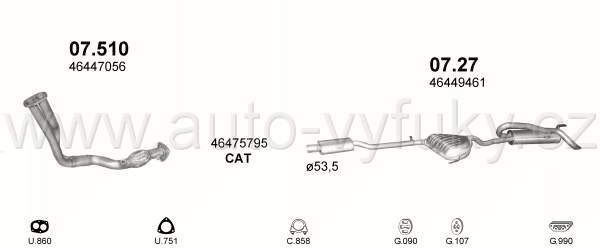 Výfuková soustava , kód: 07.27 Příklad použití: Fiat Brava/Bravo 1.6i kat 95-; Lancia Delta 1.6 -16V 96-, kódy Bosal Walker aj.: 16.051 16.036... |