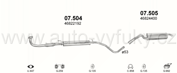 Tlumič výfuku střední , kód: 07.504 Příklad použití: Fiat Stilo 1.6 -16V hat. kombi 01-, kódy Bosal Walker aj.: 16.064 290-305 03.001.80 03.001.71...
