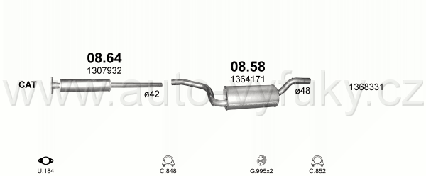 Tlumič výfuku přední , kód: 08.64 Příklad použití: Ford Focus/ C-Max 1.4i/1.6i ; Volvo C30/S40, kódy Bosal Walker aj.: 14.6103 154-711 04.204.80...