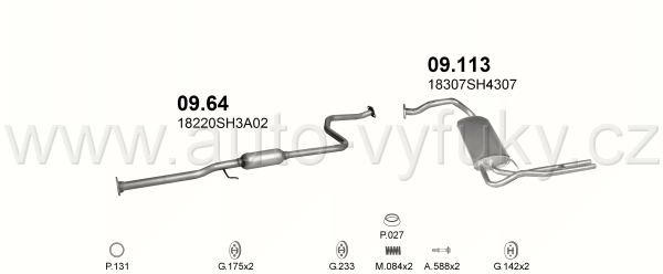 Tlumič výfuku střední , kód: 09.64 Příklad použití: Honda Civic 1,6i-16V 87-91 1,5i-16V 87-89, kódy Bosal Walker aj.: 286-511 16434 18220-SH3-A14... |