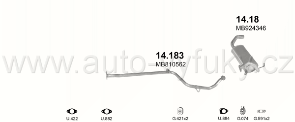 Trubka střední , kód: 14.183 Příklad použití: Mitsubishi Colt 91-95 1.3i/1.6i kat, kódy Bosal Walker aj.: 30.5003 945-275 50.091.71 P3902 MI.12.04... |