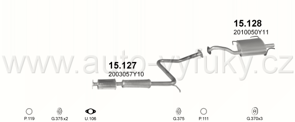 Tlumič výfuku střední , kód: 15.127 Příklad použití: Nissan Sunny 90-96/100NX 90-92 1.6, kódy Bosal Walker aj.: 14.011 285-397 DN343D 260116 01.50618... |